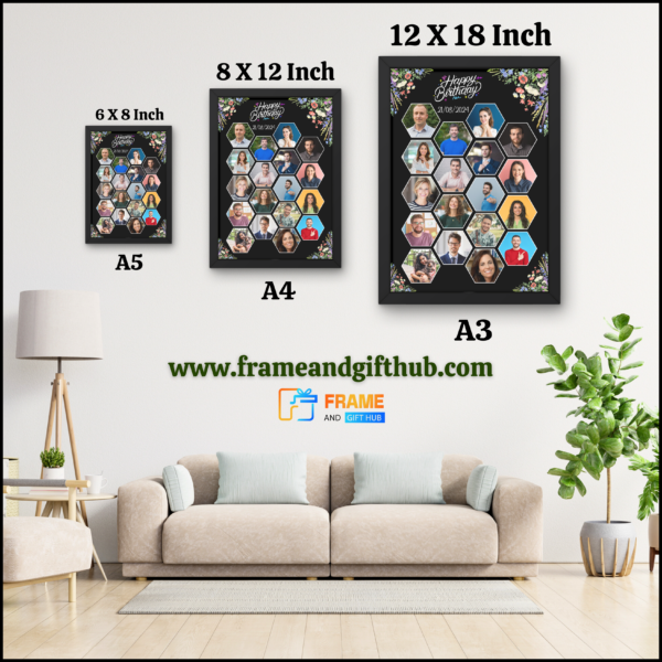 Make birthdays extra special with this personalized birthday photo frame! A perfect way to capture beautiful memories, this frame is made from premium fiber and features a strong acrylic front, making it unbreakable and long-lasting. Available in A3, A4, and A5 sizes with black, white, and wooden color choices, it’s a stylish gift for any occasion.